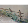 „Domek na wzgórzu” to kameralny obraz autorstwa Klementyny Janusz, wykonany techniką gwaszu. Artystka tworzy delikatną, niemal poetycką wizję samotnego domku pośród natury, wykorzystując przenikające się odcienie zieleni, błękitu i bieli. To praca, która emanuje spokojem i refleksją – idealna dla osób ceniących subtelne emocje i symboliczne przedstawienia pejzażu.