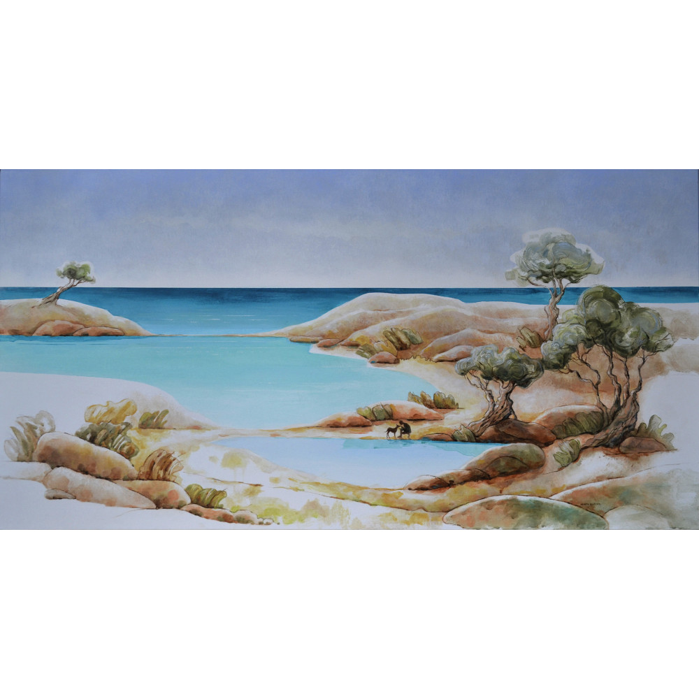 Akwarela oprawiona w Passe-partout o wymiarach całkowitych 40×50cm.