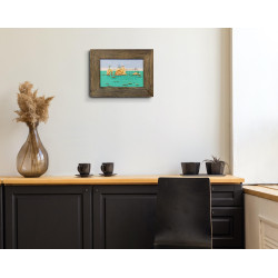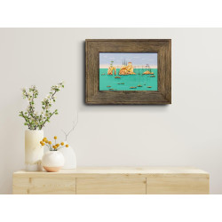 Obraz oprawiony jest w solidną drewniana ramę o szerokości 5 cm.
