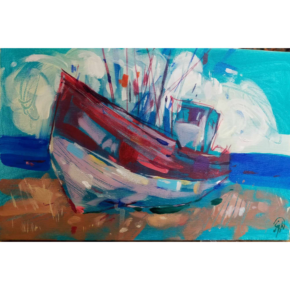ŁODZIE W PRZYSTANI (2023) 27×37/38×46cm.