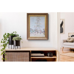 Praca oprawiona w efektowną, złotą ramę o szerokości 6 cm.