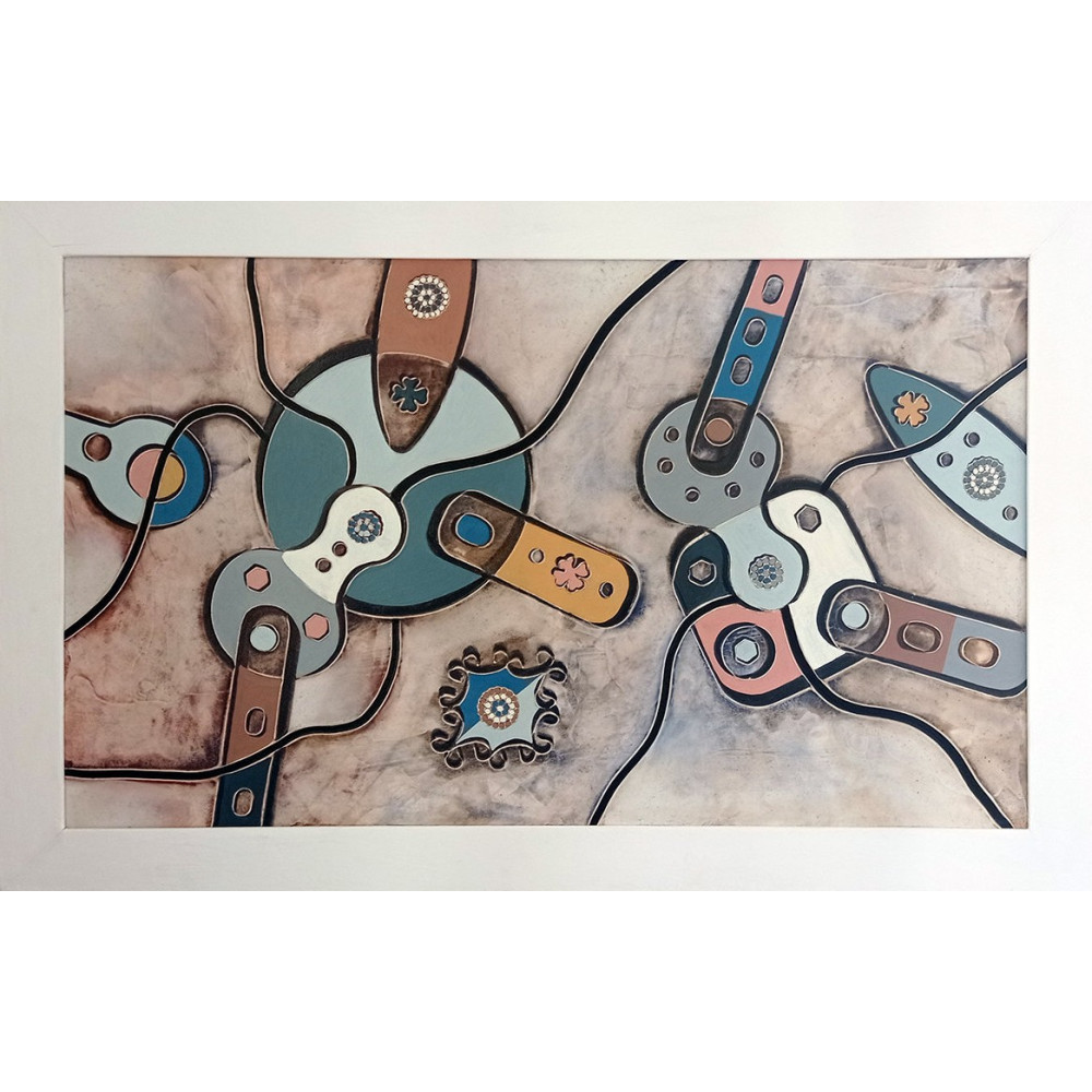 Technika olej, kawa i oksyda na płaskorzeźbie w gipsie na płótnie