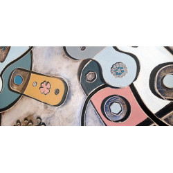 Prace to płaskorzeźba wykonana gipsem na płótnie, następnie pigmentowana różnymi substancjami (kakao, henna, kurkuma, tlenki, karkadè, kawa, pigmenty akrylowe itp.) Po nałożeniu bardzo cienkiej warstwy żywicy, obraz wykańczany jest farbami olejnymi.