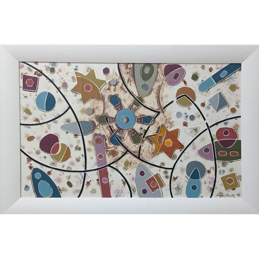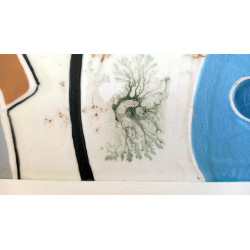 Technika olej, kawa i oksyda na płaskorzeźbie w gipsie na płótnie
