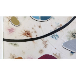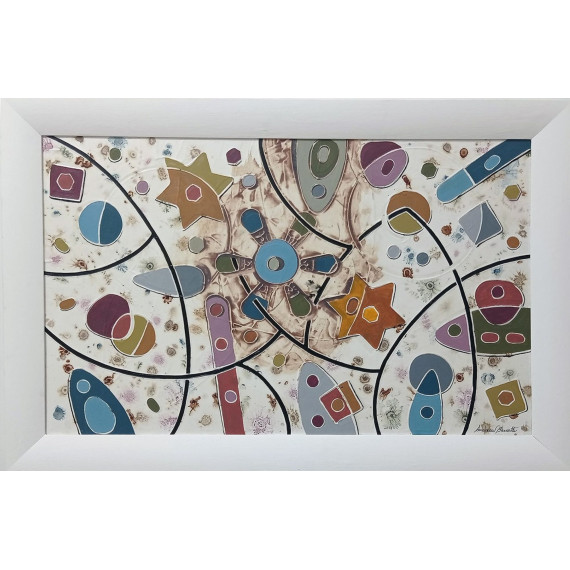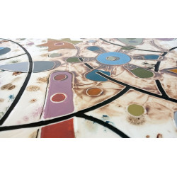 Prace to płaskorzeźba wykonana gipsem na płótnie, następnie pigmentowana różnymi substancjami (kakao, henna, kurkuma, tlenki, karkadè, kawa, pigmenty akrylowe itp.) Po nałożeniu bardzo cienkiej warstwy żywicy, obraz wykańczany jest farbami olejnymi.