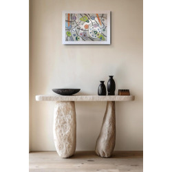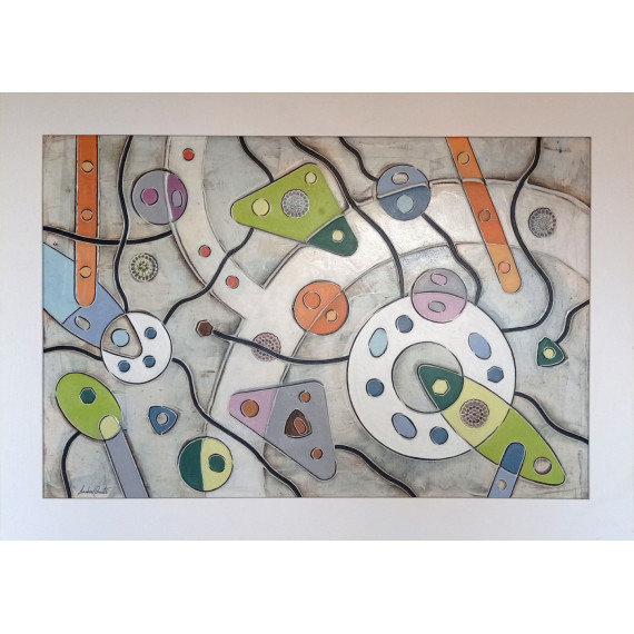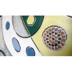 Prace to płaskorzeźba wykonana gipsem na płótnie, następnie pigmentowana różnymi substancjami (kakao, henna, kurkuma, tlenki, karkadè, kawa, pigmenty akrylowe itp.) Po nałożeniu bardzo cienkiej warstwy żywicy, obraz wykańczany jest farbami olejnymi.