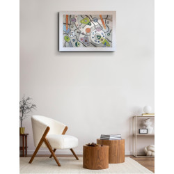 Obraz oprawiony jest w nowoczesną białą ramę o szerokości 4cm