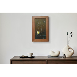 Praca oprawiona w prostą drewnianą ramę o szerokości 2 cm.