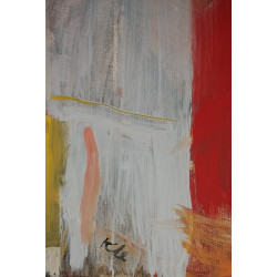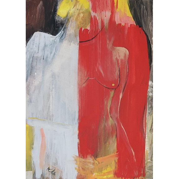 Nowoczesny obraz olejny autorstwa Klementyny Zuzanny Klein, przedstawiający akt kobiecy w formie abstrakcyjnej, osadzony w nocnej atmosferze. Kompozycja przyciąga wzrok kontrastem intensywnych barw – bieli, czerwieni i ciepłych tonów żółci – tworząc dynamiczne, a zarazem zmysłowe wrażenie.