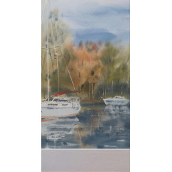 Akwarela oprawiona w passe partout o wymiarach całkowitych 40×50cm.