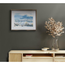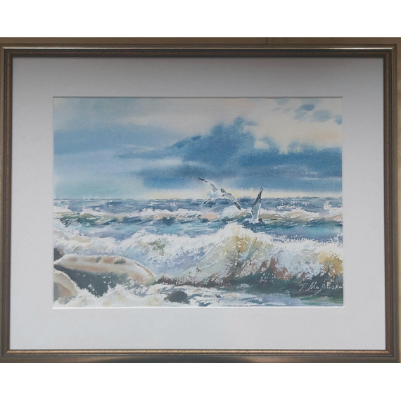 Energia fal i skrzydła mew unoszących się nad burzliwym morzem tworzą niezwykle ekspresyjny pejzaż morski. Tatiana Majewska ukazuje potęgę natury w pełnej krasie, oddając zarówno dramatyzm chwili, jak i piękno ruchu. To dzieło zachwyci miłośników morskich pejzaży i wniesie do wnętrza odrobinę dynamiki