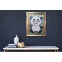 Obraz oprawiony jest w szeroką drewnianą ramę o szerokości 4cm