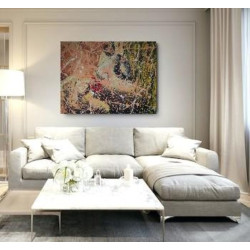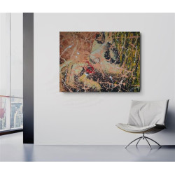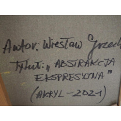 Akryl na płótnie oprawiony w prostą nowoczesną ramę.