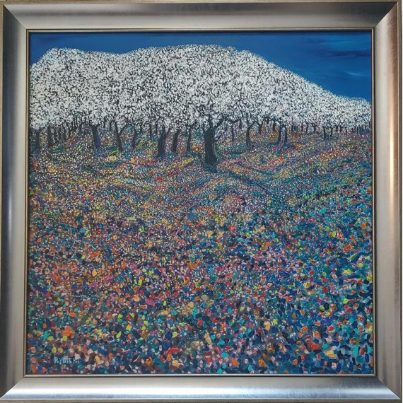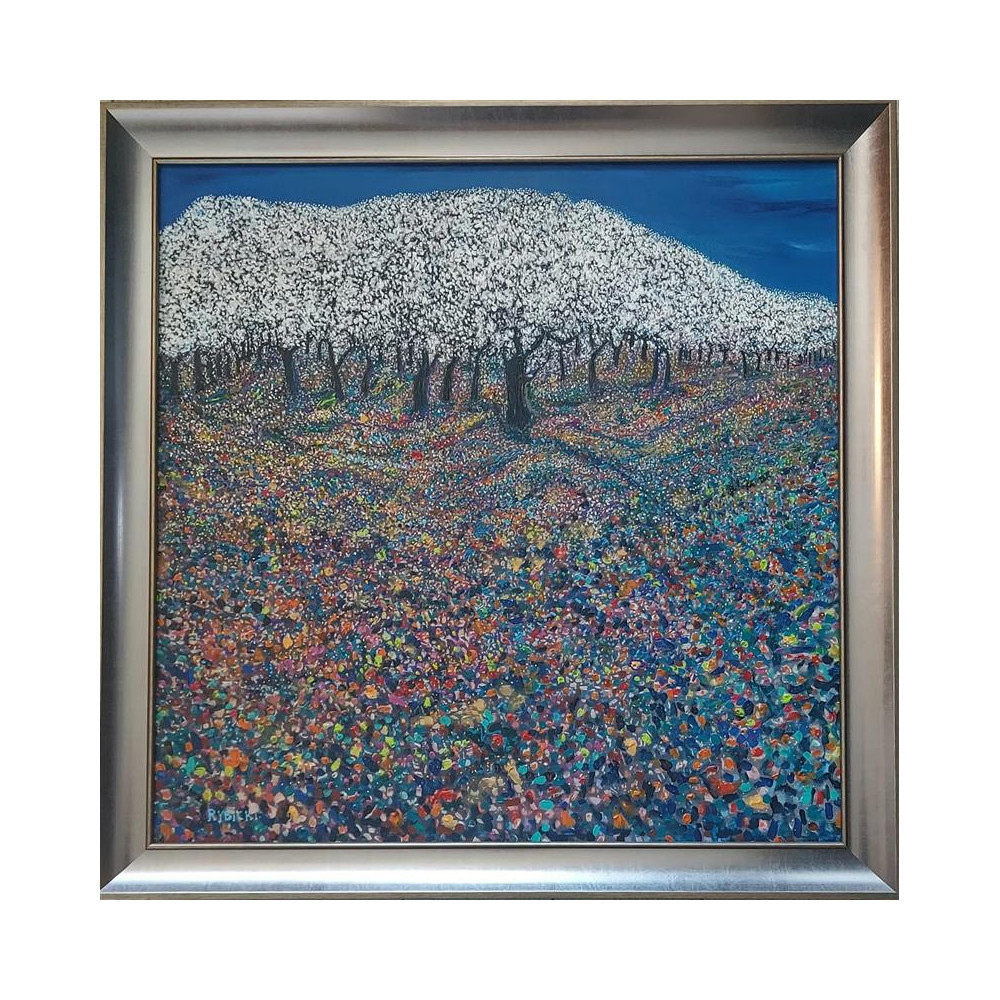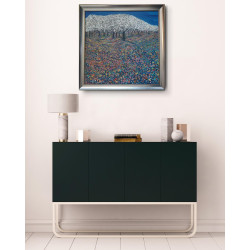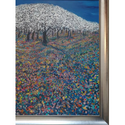 Akryl na płótnie oprawiony w prostą nowoczesną ramę.