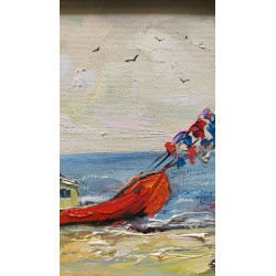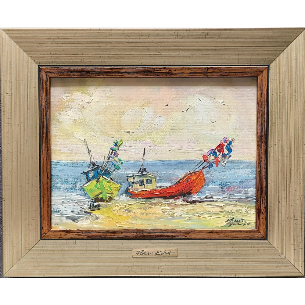 Obraz "Kutry w morze II" nie wymaga oprawy – starannie wykończone krawędzie pozwalają na bezpośrednie zawieszenie na ścianie.
