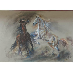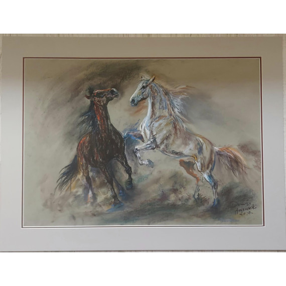 Dodaj do swojej kolekcji dzieło pełne energii i symboliki – wybierz unikalny pastel z motywem koni.